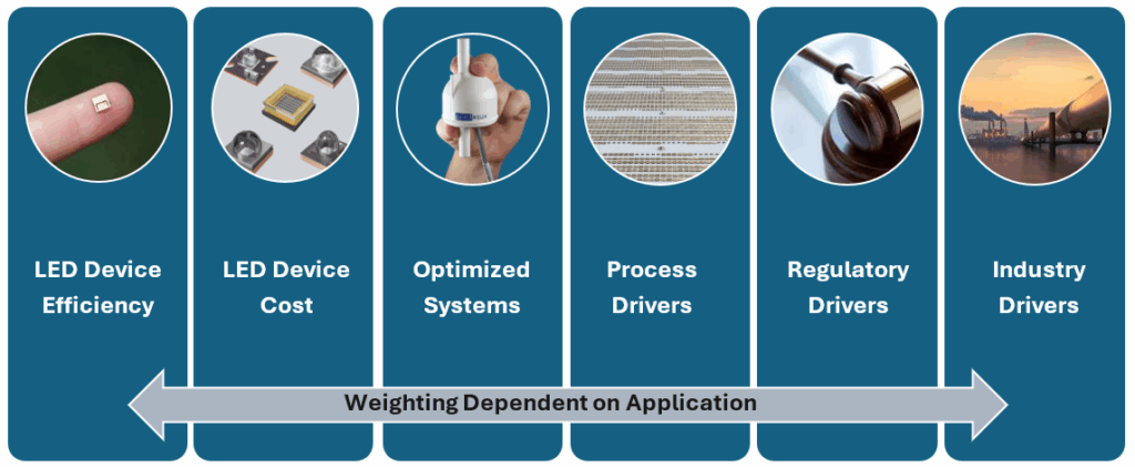 Figure 2: Six factors describing UV-C LED technology commercialization